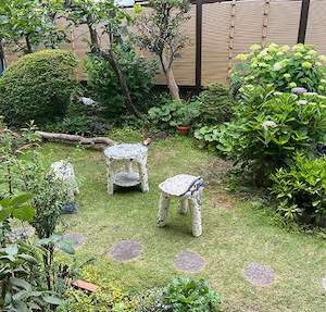 撮影と記事を作ることの許可を貰い撮影をしながらお話を伺いました。民家の一角を改装し、オープンしたてだと言うギャラリーのデザインや壁のペイントなどには、オーナー自らも参加したとのことでした。丸い柱が室内空間を区切り、古い造りならではの落ち着きを感じさせてくれます。窓からはそろそろ咲きかけた紫陽花や青々とした芝生が目の端に入ってきて居心地の良い素敵なギャラリーとなっていました。