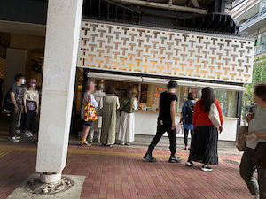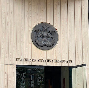 もうそろそろ細い路地に曲がる頃かなと思うくらいのタイミングで、目黒川を挟んだ向こう側に人だかりがあり様子を見に行ってみるとスターバックス店舗前でした。私はこの店舗がどのようなものであるのかその時は知らなかったのですが、調べたところ「スターバックス リザーブ ロースタリー」と名付けられプレミアムなコーヒー体験を提供する特別な店舗とありました。またその外観は日本を代表する建築家である隈研吾氏とのコラボであるとのことで「なるほど」と人気の理由に納得します。