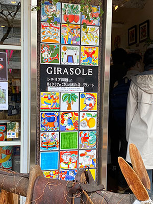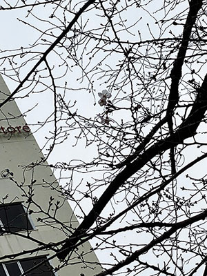 今年の春は天気に恵まれず、蕾も膨らまない桜の木は時折降る雨に濡れ黒いシルエットが寂しげです。写真にしてみると枝の上部はほんのりピンクに色づき、咲く時を今かと待ち受けているのが感じられます。桜は咲いていないし時折雨が落ちてきますが、目黒川沿いはたくさんの露店と歩く人で意外と賑わっています。「立ち止まらないでください」と交通整理をする警備の声を聞きながら人波を縫って池尻大橋方面に歩きます。川沿いには大好きなシチリア雑貨店の”ジラソーレ”がありますが、寄り道せずギャラリーへ向かいます。そろそろお腹が空いていましたがギャラリー近く、mellow.アオバダイというバルでのランチを予定しているので到着まで我慢なのです。