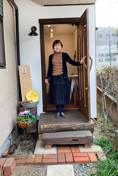 道から見えるギャラリーの庭はすっかり春模様です。キョロキョロと外を彷徨いていたら二ノ宮さんがお出迎えしてくださいました。