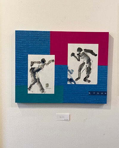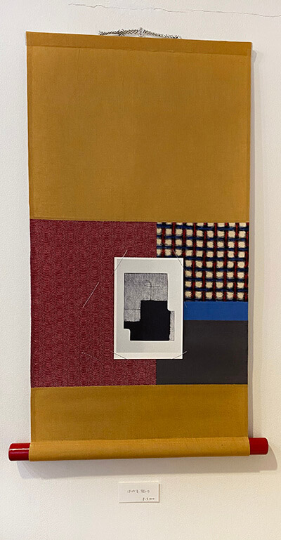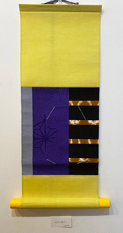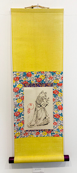 ギャラリーに入ると様々な掛け軸スタイルの作品がスラっと下がっていてます。早速、制作過程などのお話を伺うことにしました。