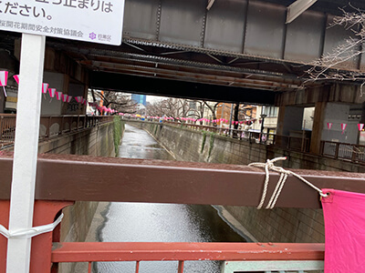 頃も3月下旬、通り道の目黒川はさぞ桜が美しかろうと展示期間(3月16~27日)中日の23日に行くことにしました。前回は東急田園都市線の池尻大橋から目黒天空庭園方面コースを選んだので今回はこの季節、賑やかでおしゃれな花見向け店舗が立ち並び、お祭りムードがいっぱいな中目黒駅からの徒歩15分、おしゃれコースで向かう事にしました。