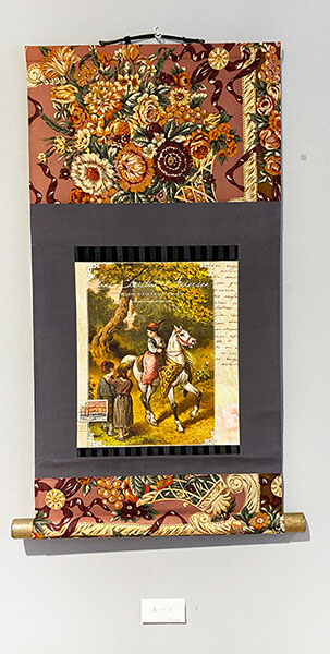 掛け軸スタイルの作品は、中の作品(本紙)を描き(もしくは選定し)表装するにあたっては、1点づつ作品にふさわしい布素材を選定または染色し仕上げたとの事です。表装についての技術や意味合いなど、丁寧に教えてくださいましたがとても覚えきれずgoogle先生に頼って下記のように調べました。*掛軸での表装は部位それぞれ名称や役割があり、適当に体裁を整えれば良いというものでは無いと知りました!