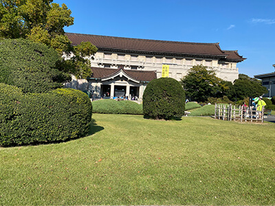 特別展「やまと絵 -受け継がれる王朝の美-」は国立博物館での展示です。『博物館』というだけで由緒正しい何かが待ち受けているようで立派な門の前、入館時には訳もなく😁襟を正したくなる気分です。敷地内に入ると、特別展示のほか常設展示、資料館などが建物ごとに分かれていて庭園や茶室まであります。陽気の良い時であればゆっくりと散歩をするだけでも豊かな気分になれそうです。