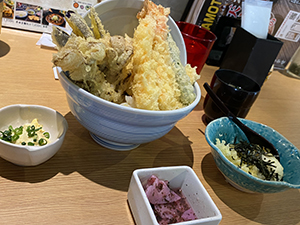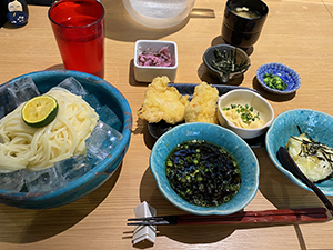 お目当てのイタリアンには入れませんでしたが美味しそうな天ぷら屋さん(天ぷら串 山本家)を近場に発見しました。こちらは運良くお客さんが2組ほど帰るところだったためすぐに入ることができました。ランチメニューから半田そうめんとかしわ天のセットを注文!少し暑かったのも手伝いそうめんのツルツルがとても美味しかったのでした。(半田そうめんは初めて食べました🥰)